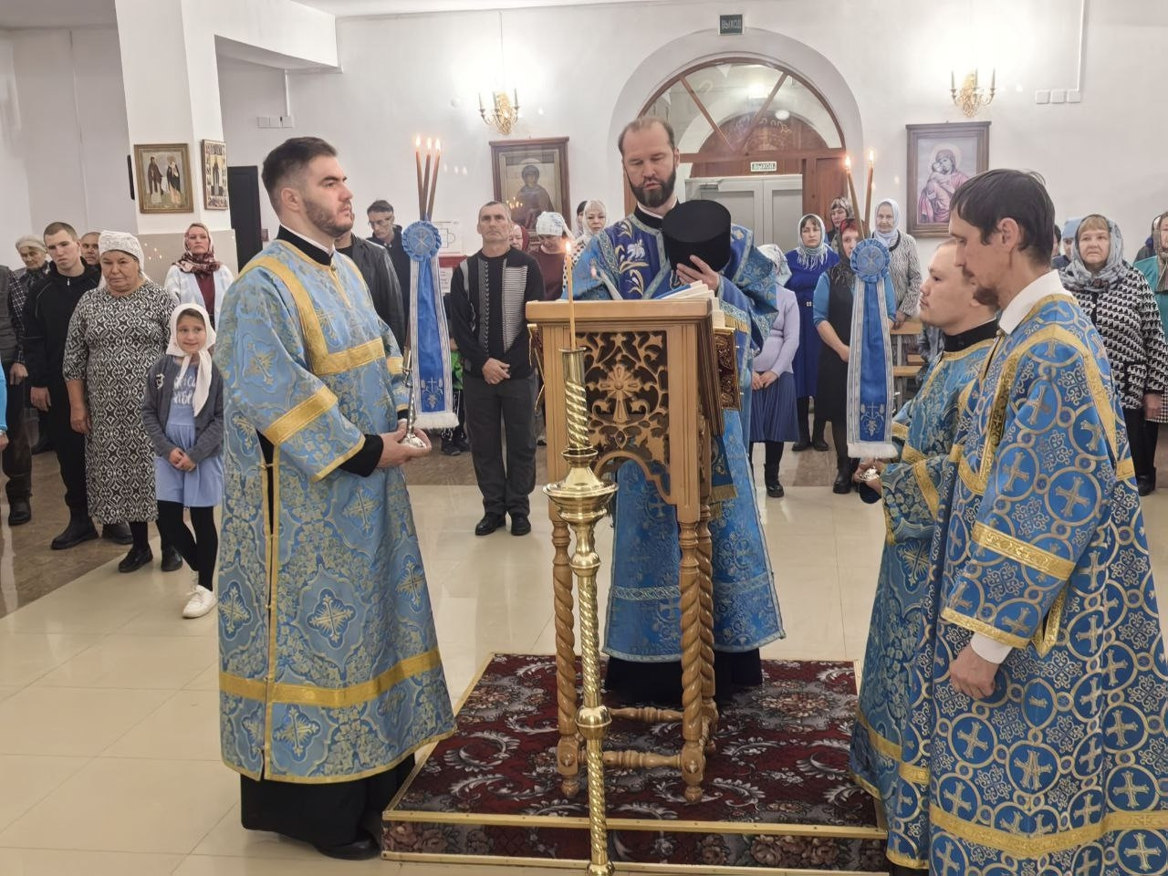 По завершении литургии митрополит Димитрий с клиром и прихожанами совершил крестный ход вокруг храма, провозгласив многолетие Святейшему Патриарху, властям и всем, кто трудится на благо храма. В своем архипастырском слове владыка обратился к верующим, благословив их на добрые дела и духовные подвиги, подчеркивая важность единства и молитвы в эти святые дни.