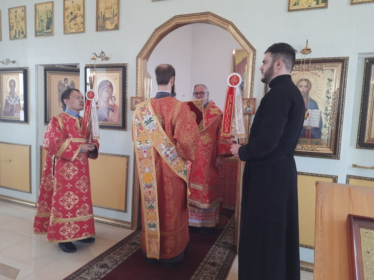 По окончании великой вечерни митрополит Димитрий вместе с клиром и прихожанами совершили крестный ход вокруг храма, сопровождаемый прошениями о даровании дождя. В завершение богослужения владыка обратился к прихожанам с архипастырским словом и вручил всем пасхальные подарки, укрепляя дух общины в радостное время празднования Пасхи.
